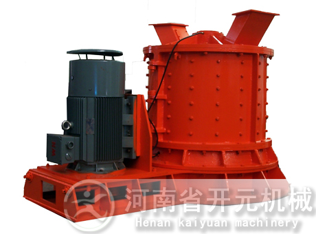 立式復(fù)合破碎機工作原理:物料由機器上部垂直落入高速旋轉(zhuǎn)的葉輪內(nèi),在高速離心力的作用下,與另一部分以傘狀形式分流在葉輪。