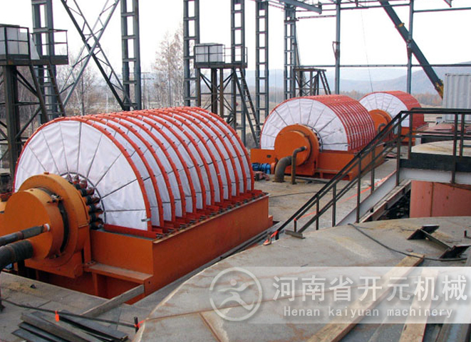 真空過濾機(jī)是以真空負(fù)壓為推動力實現(xiàn)固液分離的設(shè)備,在結(jié)構(gòu)上,過濾區(qū)段沿水平長度方向布置,可以連續(xù)完成過濾、洗滌、吸干、濾布再生等作業(yè)。橡膠帶式過濾機(jī)具有過濾效率高、生產(chǎn)能力大、洗滌效果好、濾餅水分低、操作靈活,維修費用低等優(yōu)點。橡膠帶式過濾機(jī)可廣泛應(yīng)用于冶金、礦山、化工、造紙、食品、制藥、環(huán)保等領(lǐng)域中的固液分離,尤其在煙氣脫硫中的石膏脫水方面( FGD )有良好的應(yīng)用。